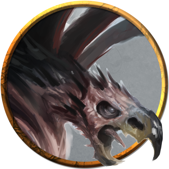 Riding the winds on a triple set of wings, tempest behemoths fly above all, death riding in their shadows. In battle, they snatch up foes only to cast them away from great heights, smash enemies with their wings, or hurl razor-edged scales at distant targets. A tempest behemoth's divine heritage wards its body, mind, and soul against harm. Only the most powerful magic or attack can pierce its defenses. Serene in their immortality, tempest behemoths fear no other being.